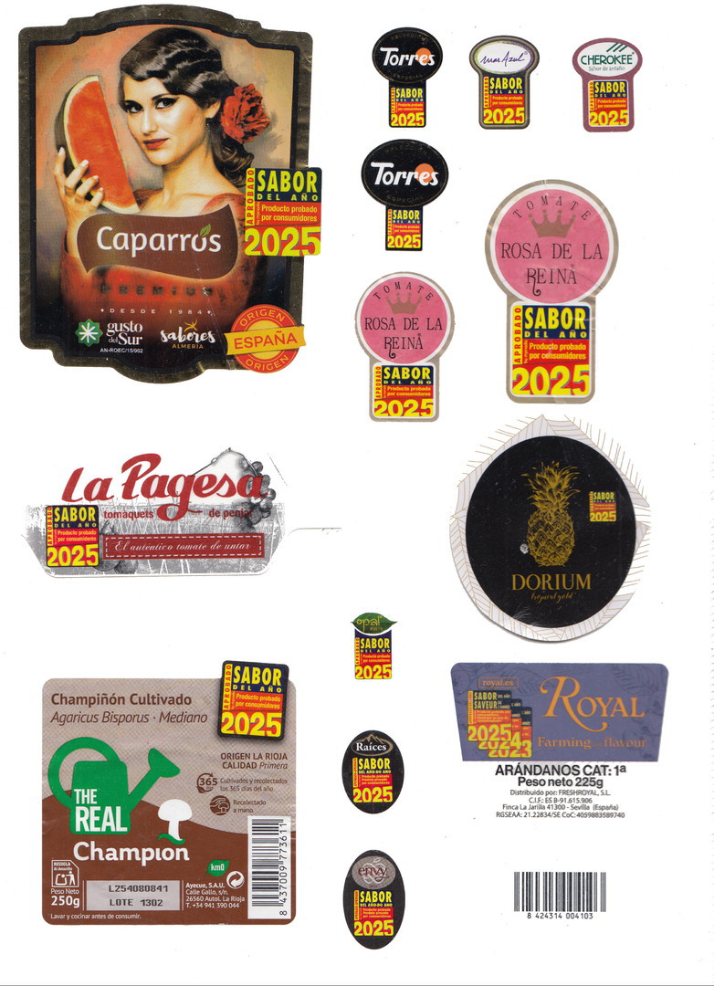 - Los vegetales, si la empresa nos ha cedido sus etiquetas y tienen diferentes tipos de verduras, las ponemos todas juntas, para que se observen bien todos sus productos.
