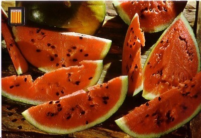 La sandía se considera originaria de países de Africa tropical en estado salvaje, las encontramos en abundancia en llanuras de África. Su cultivo se remonta desde hace siglos a la ribera del Nilo, desde donde se extendió a numerosas regiones bañadas por el mar Mediterráneo, Próximo Oriente y la India.. En Europa no fue introducida hasta el siglo XIII traídas por los diversos movimientos de los Cruzados y fue, en su momento, símbolo del martirio de San Lorenzo. El 10 de agosto, en Florencia (Italia) se celebra la gran fiesta de la sandía. Los pobladores europeos fueron quienes la llevaron hasta América, donde su cultivo se extendió por todo el continente. CALIBRES Las SANDÍAS destinadas al comercio suelen pesar entre 3 y 8 kilos. Las sandías se calibran con un número, según el peso de las piezas: 6 (piezas de 1,5 a 2,4 kilos), 5 (piezas de 2,5 a 3,2 kilos), 4 (piezas de 3,3 a 4,2 kilos) (piezas de 4,3 a 5,5 kilogramos) y de 2 piezas + de 6 kilos. Debido a la evolución de la sociedad la tendencia de este cultivo va encaminada a producir frutos de pequeño tamaño (2 kilos o inferior). |